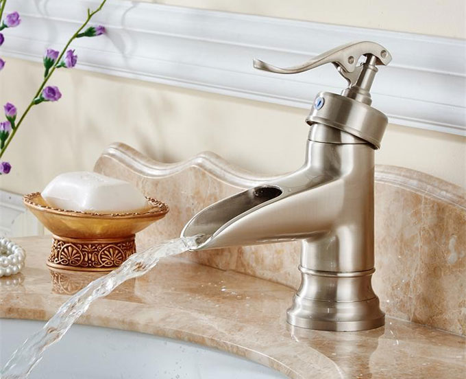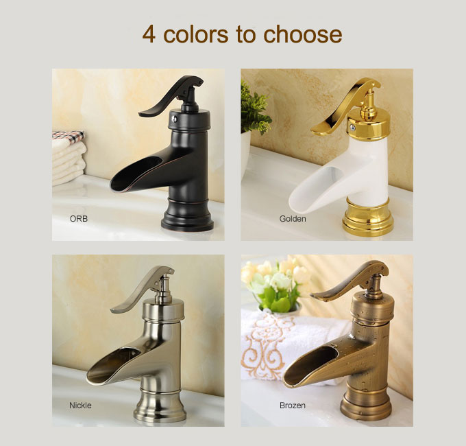 Sanliv Single Hole Bathroom Sink Faucet with contemporary waterfall design delivers in Brushed Nickel, ORB, Brushed Bronze, Gold-white finish for your choice. Single lever handle controls water pressure and temperature. Sanliv 28309 Bathroom Basin Mixer Tap is an ideal choice for the contemporary bathroom.